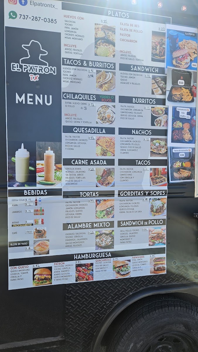 Welcome to El Patron Tx, a vibrant Mexican food truck located at 2033 S Austin Ave in Georgetown, TX. This culinary gem serves up authentic Mexican cuisine, showcasing a menu that highlights cherished favorites. Dive into their delectable Chilaquiles, served with rice, beans, cheese, cream, and tortillas for just $12. Or explore the breakfast sandwiches that feature options like bacon, avocado, and eggs, all priced affordably.